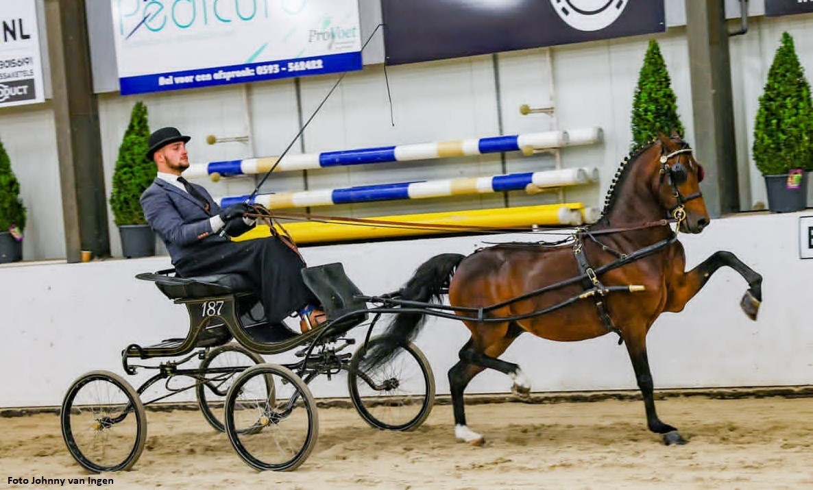 Bij de Hackney’s was Noddyvyse I am Here (v. Heartland Propet) van stal Vos in vorm en sloeg een dubbelslag door met Jarin Vos de openklasse te winnen en met Gerlinde Vos de damesklasse. De bruine pony trad bijzonder actievol op en doet ook met een fraaie hoofd en hals houding.